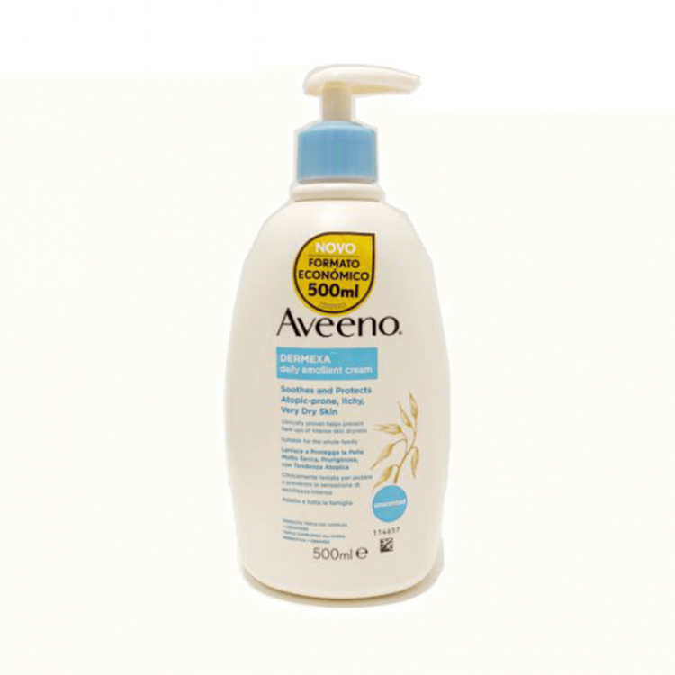 Aveeno Dermexa Creme Emoliente com complexo triplo de aveia prebiótica (Farinha de Aveia + Extrato de Aveia + Óleo de Aveia) e ceramidas ajuda a melhorar e a estabilizar o equilíbrio do microbioma da pele para uma pele mais resistente e de aspeto saudável desde o primeiro dia.