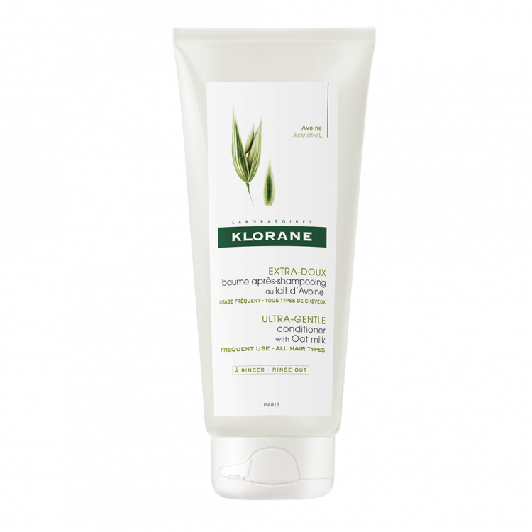 Klorane Capilar Bálsamo Leite de Aveia para todos os tipos de cabelo, desembaraça e suaviza todos os cabelos. Tem uma textura fluida e levemente aveludada.