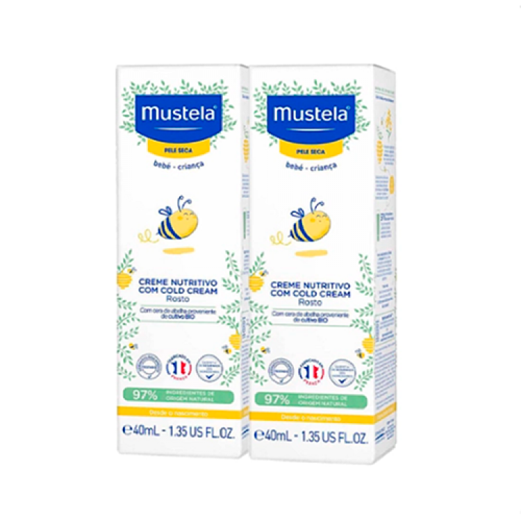 Mustela Bebé Pele Seca Creme Nutritivo com Cold Cream é ideal para a hidratação diária do bebé. • Nutre de forma imediata e prolongada a pele seca. • Hidrata a pele. • Restaura a barreira cutânea e protege a pele das agressões externas. • Preserva a riqueza celular da pele do recém-nascido, do bebé e da criança, graças à Perséose de Abacate®. Testado sob controlo dermatológico e pediátrico. Elevada tolerância. Hipoalergénico - Formulado para minimizar o risco de reações alérgicas. 0% parabenos, 0% ftalatos, 0% fenoxietanol