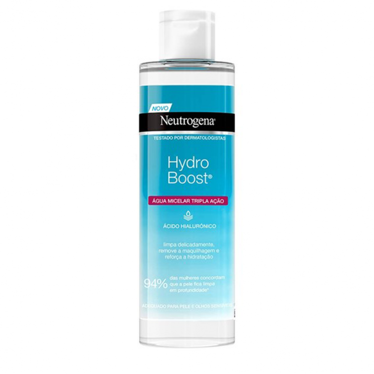 Hydro Boost Água Micelar Tripla Ação, uma fórmula única com Ácido Hialurónico e três tipos de moléculas micelares que atuam em sinergia para lhe proporcionar três ações: 1. Remove a maquilhagem, mesmo a mais resistente e à prova de água 2. Elimina toda a sujidade e oleosidade 3. Reforça a hidratação da pele Tão agradavelmente eficaz, tão excecionalmente delicado, 94% das mulheres concordam que a pele fica limpa em profundidade após a sua utilização*. Testado por oftalmologistas e adaptado para pele sensível.