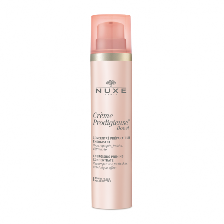 Nuxe Crème Prodigieuse Boost Concentrado é uma loção primer, que revitaliza, preenche e energiza a tez. Inspirada nos cuidados koreanos, esta loção dá à pele um boost de energia e prepara-a para os cuidados hidratantes. Proporciona uma sensação de frescura, preenche e revela o esplendor da tez. Perfume refrescante e vibrante, com notas de jasmim verde, lichia e notas amadeiradas brancas. Ideal para todo o tipo de pele.