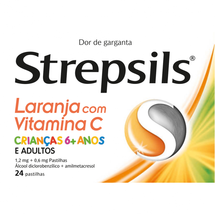 As pastilhas Strepsils de Laranja com Vitamina C contêm substâncias ativas que atuam na garganta seca, irritada e dolorosa, mesmo após a pastilha acabar. Estão indicadas a partir dos 6 anos de idade. Cada pastilha contém a associação de dois importantes antissépticos que ajudam a combater infeções bacterianas e virais que causam dores de garganta e infeções na boca. Com início de ação rápido de apenas 5 minutos, proporcionam um alívio dos sintomas até 2 horas. Ação 5 em 1: antivírica, antibacteriana, antifúngica, anestésica e antisséptica.