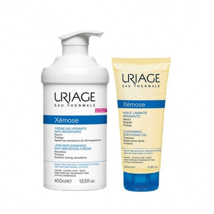 Duo composto por Uriage Xemose Creme Emoliante 400ml, com Oferta Óleo Limpeza 200ml